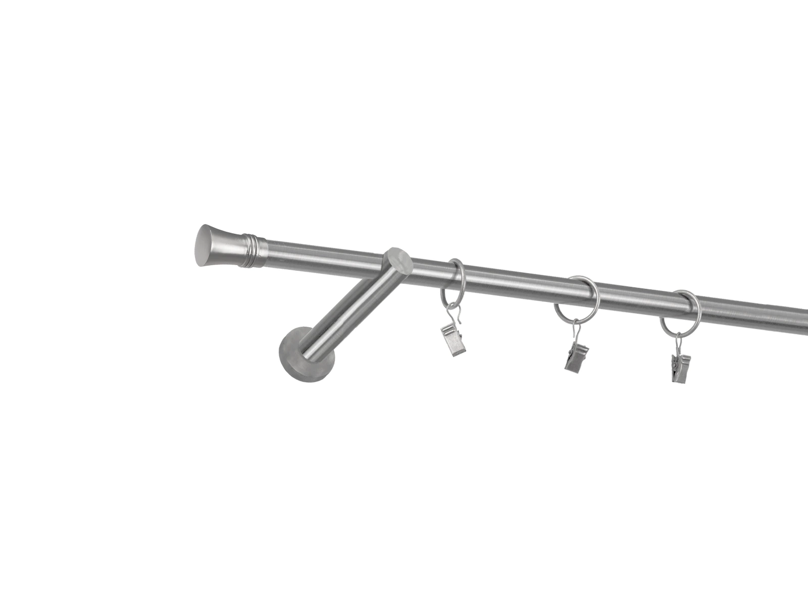 • Dĺžka 1600 mm - tyč 16mm - 1600mm - 1ks, držiak - 2ks, koncovka - 2ks, krúžok so štipcom - 15ks (pri výbere parametra príslušenstvo s krúžkami so štipcom), skrutky a hmoždinky na montáž