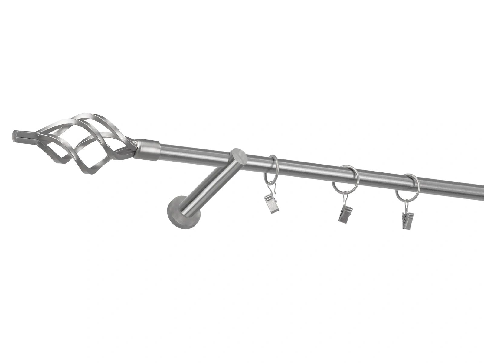 • Dĺžka 2200 mm - tyč 16mm - 2200mm - 1ks, držiak - 2ks, koncovka - 2ks, krúžok so štipcom - 21ks (pri výbere parametra príslušenstvo s krúžkami so štipcom), skrutky a hmoždinky na montáž