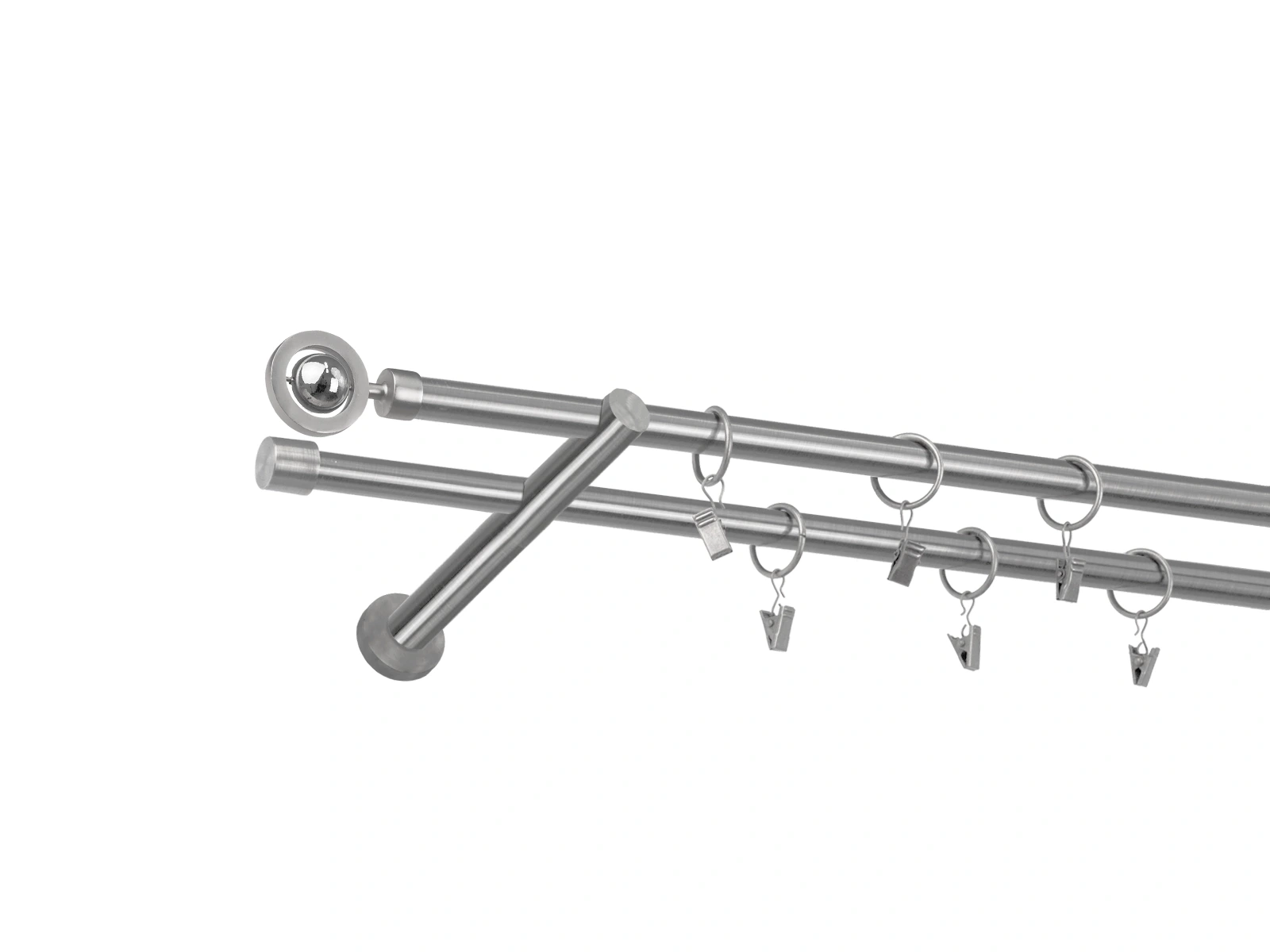 • Dĺžka 2200 mm - tyč 16mm - 2200mm - 2ks, držiak dvojitý - 2ks, koncovka - 2ks, koncovka zadná (PULLO) - 2ks, krúžok so štipcom - 42ks (pri výbere parametra príslušenstvo s krúžkami so štipcom), skrutky a hmoždinky na montáž