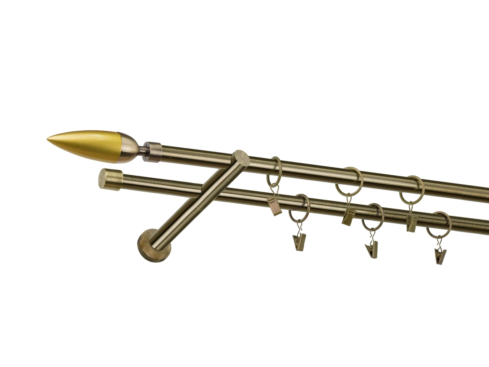• Dĺžka 3200 mm - tyč 16mm - 1600mm - 4ks, spojka tyče – 2 ks, držiak dvojitý - 3ks, koncovka - 2ks, koncovka zadná (PULLO) - 2ks, krúžok so štipcom - 60ks (pri výbere parametra príslušenstvo s krúžkami so štipcom), skrutky a hmoždinky na montáž