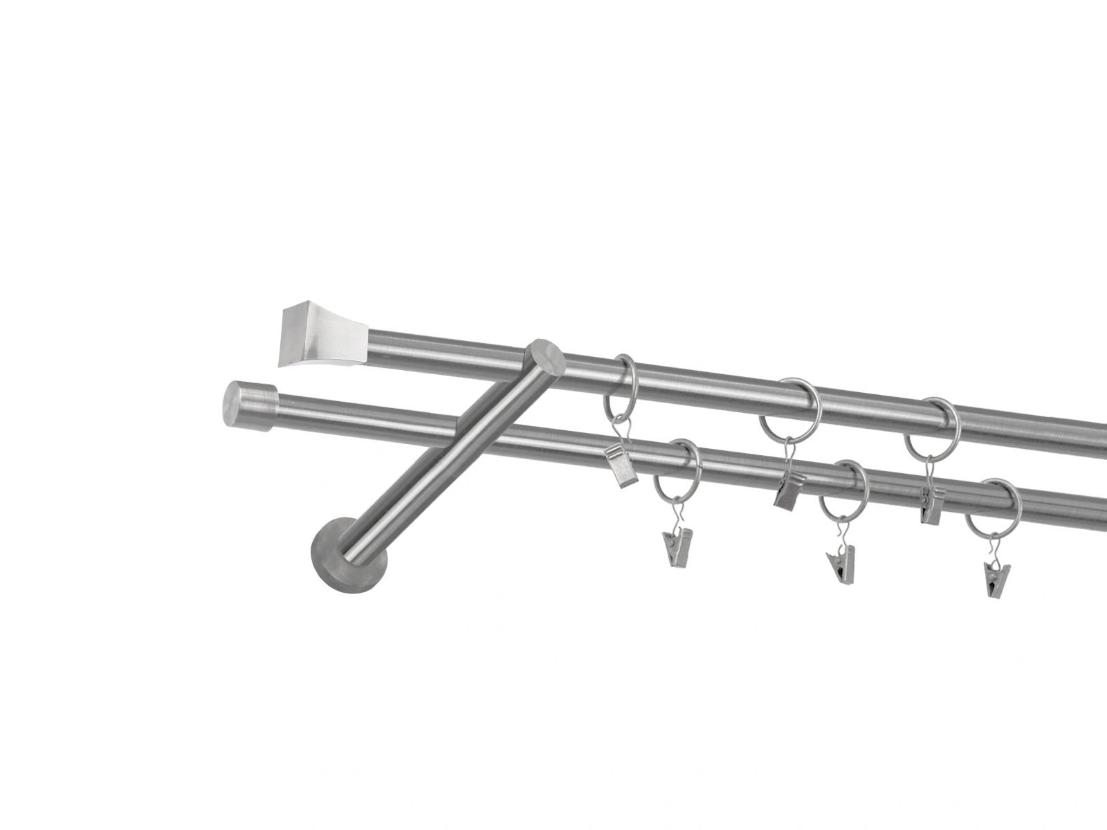 • Dĺžka 3600 mm - tyč 16mm - 1800mm - 4ks, spojka tyče – 2 ks, držiak dvojitý - 3ks, koncovka - 2ks, koncovka zadná (PULLO) - 2ks, krúžok so štipcom - 68ks (pri výbere parametra príslušenstvo s krúžkami so štipcom), skrutky a hmoždinky na montáž