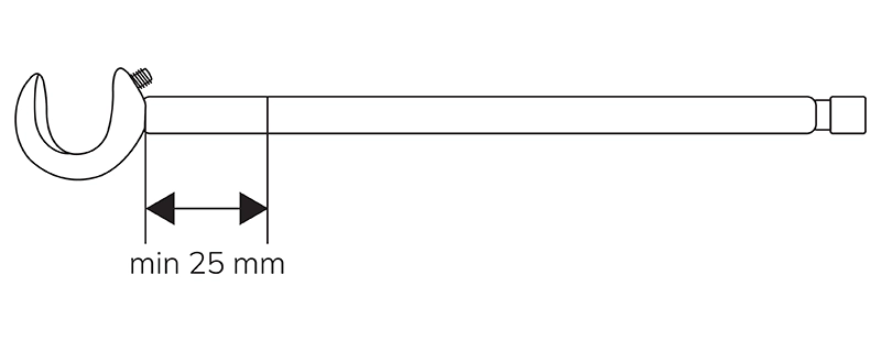 • Naznačte si miesto rezu, minimálne 25mm od lôžka pre tyč.