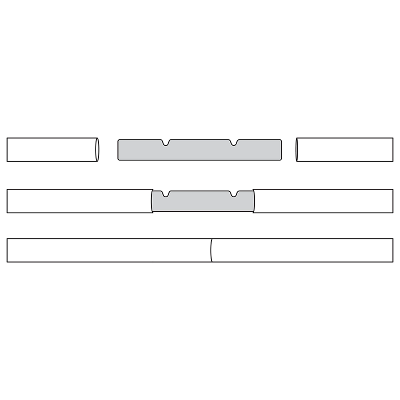 • Nasuňte polovicu spojky do prvej tyče a následne druhú tyč nasuňte na druhú polovicu spojky.