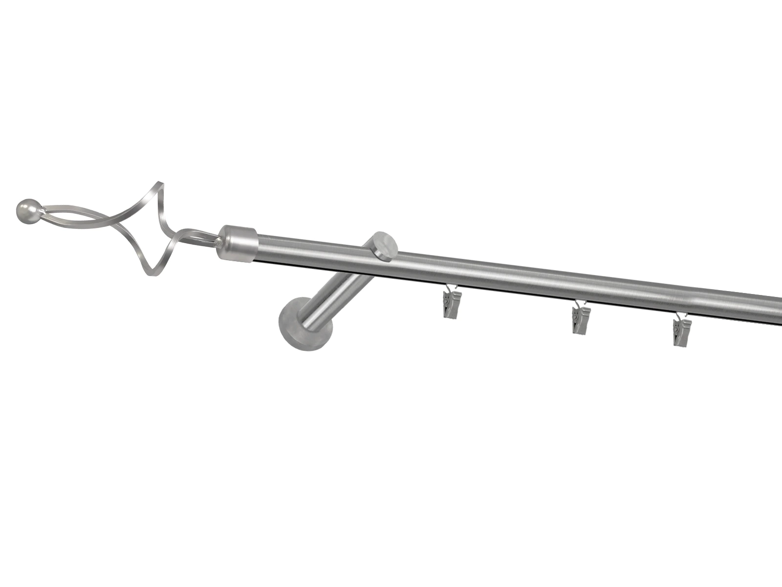 Jednoradová garniža s povrchovou úpravou - odtieň satin-nikel (matné striebro). Celokovové garniže s kvalitnou povrchovou úpravou - galvanické pokovovanie. Galvanické pokovovanie zabezpečuje vyššiu povrchovú tvrdosť, zvýšenú dolnosť voči poškriabaniu, hladký povrch. Dodávané sú v kompletoch.