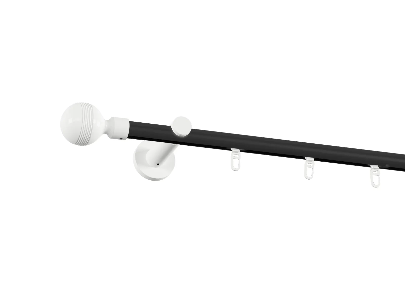 Čierne a biele kovové rúrky pre garniže s klasickým a drážkovým profilom
