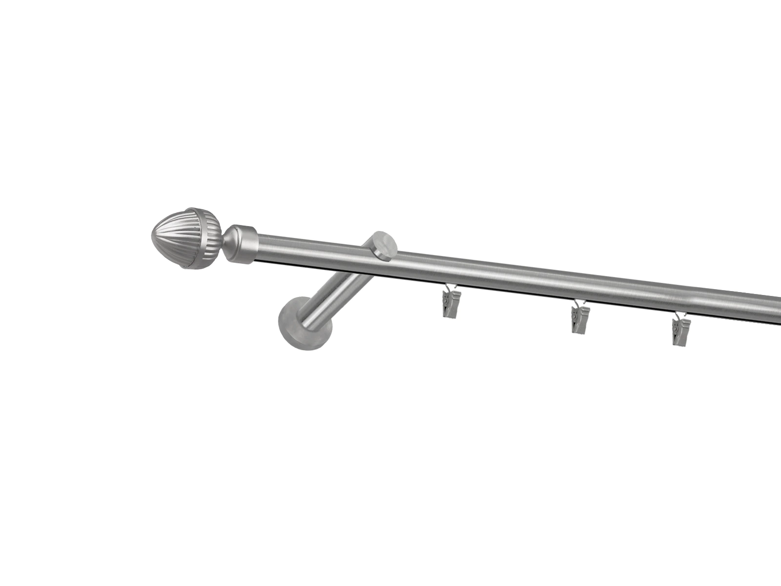 Dĺžka 1800 mm - tyč 19mm - 1800mm - 1ks, držiak - 2ks, koncovka - 2ks, krúžok so štipcom - 17ks (pri výbere parametra príslušenstvo s krúžkami so štipcom), skrutky a hmoždinky na montáž