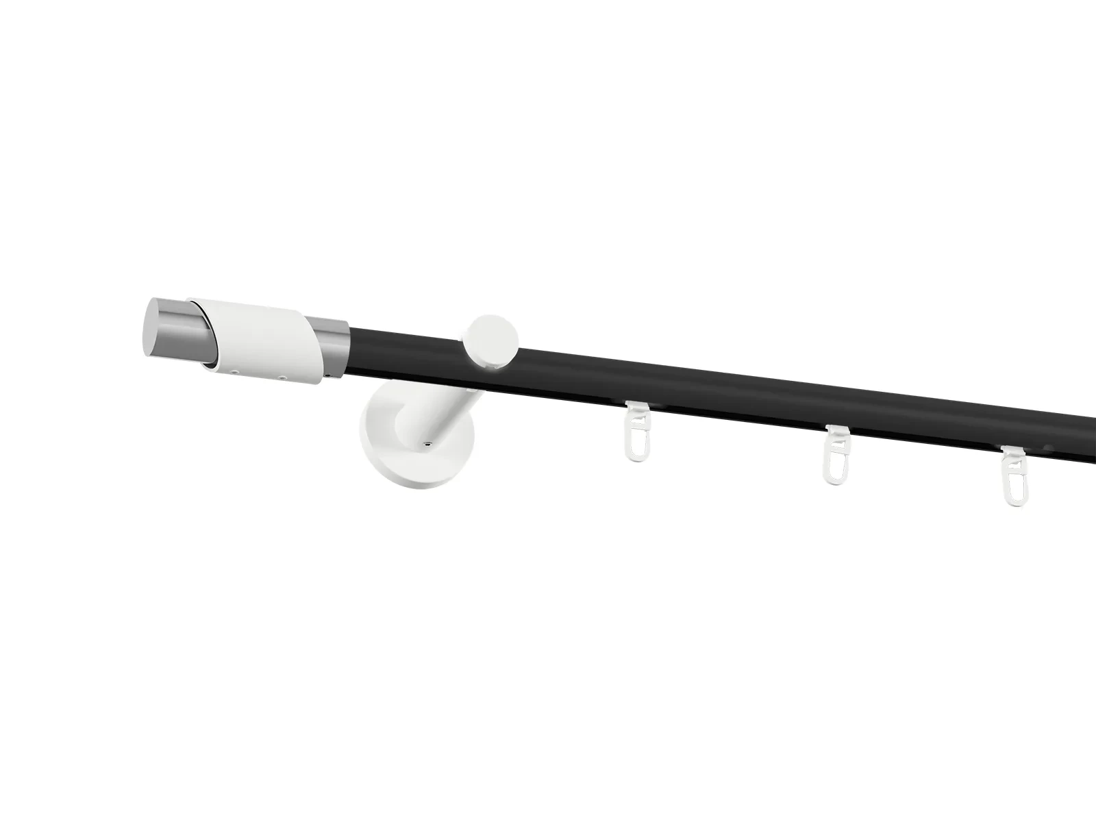 Čierne a biele kovové rúrky pre garniže s klasickým a drážkovým profilom