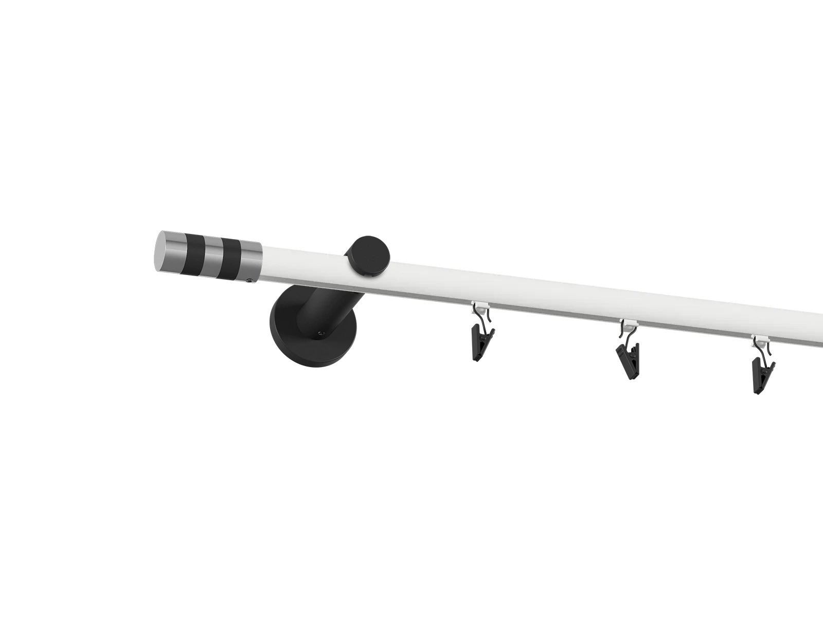 Čierne a biele kovové rúrky pre garniže s klasickým a drážkovým profilom