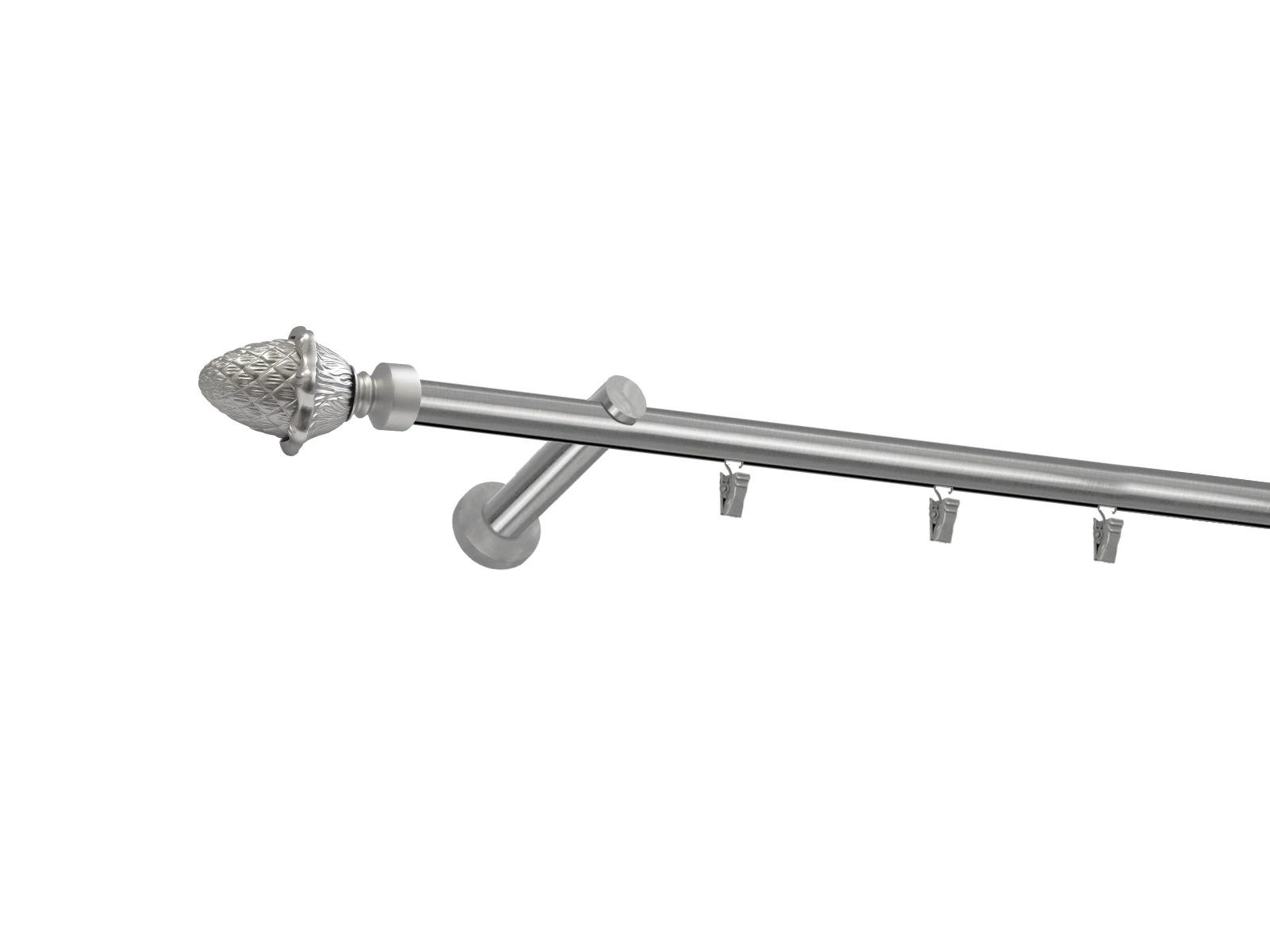 Dĺžka 1800 mm - tyč 19mm - 1800mm - 1ks, držiak - 2ks, koncovka - 2ks, krúžok so štipcom - 17ks (pri výbere parametra príslušenstvo s krúžkami so štipcom), skrutky a hmoždinky na montáž