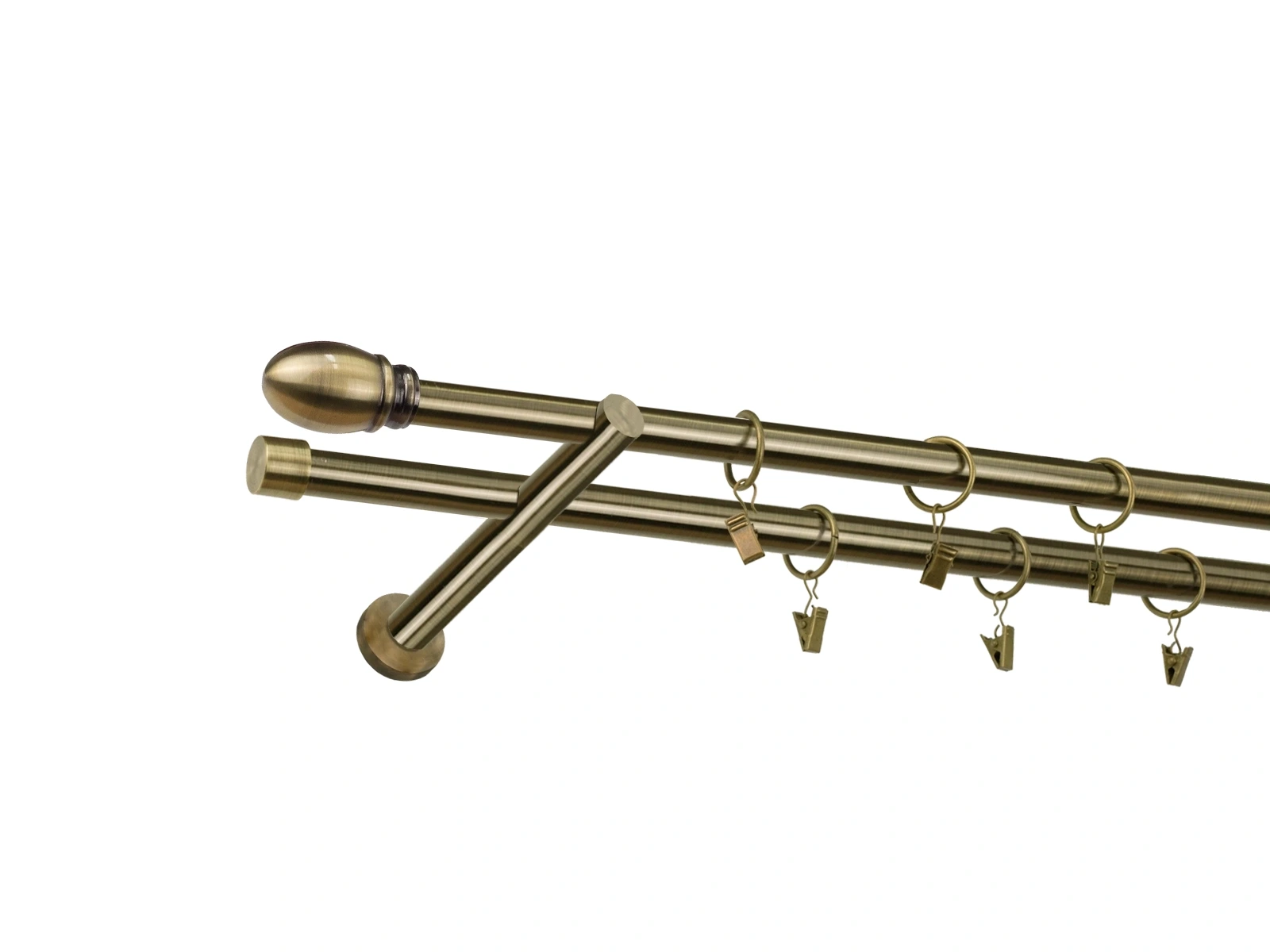 • Dĺžka 3200 mm - tyč 19mm - 1600mm - 4ks, spojka tyče – 2 ks, držiak dvojitý - 3ks, koncovka - 2ks, koncovka zadná (PULLO) -2ks, krúžok so štipcom - 60ks (pri výbere parametra príslušenstvo s krúžkami so štipcom), skrutky a hmoždinky na montáž