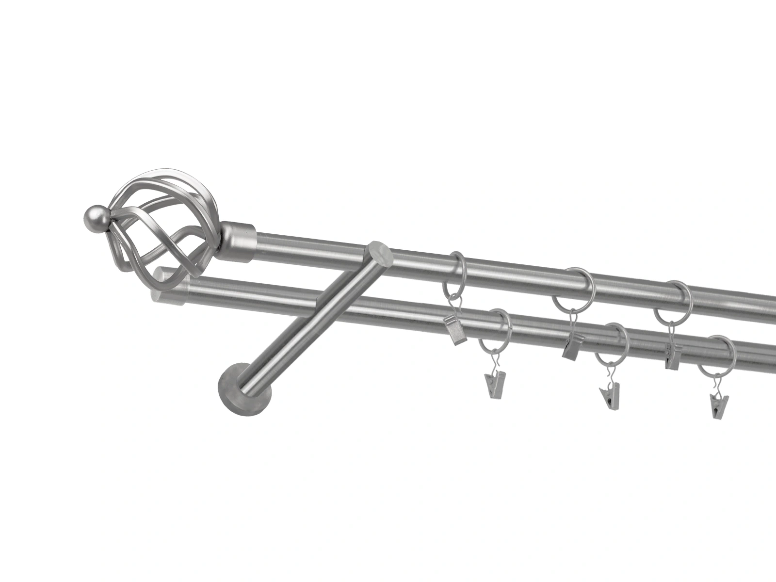 • Dĺžka 1600 mm - tyč 19mm - 1600mm - 2ks, držiak dvojitý - 2ks, koncovka - 2ks, koncovka zadná (PULLO) - 2ks, krúžok so štipcom - 30ks (pri výbere parametra príslušenstvo s krúžkami so štipcom), skrutky a hmoždinky na montáž