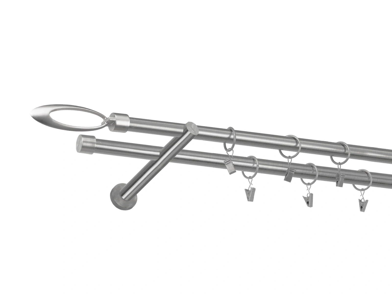 • Dĺžka 3200 mm - tyč 19mm - 1600mm - 4ks, spojka tyče – 2 ks, držiak dvojitý - 3ks, koncovka - 2ks, koncovka zadná (PULLO) -2ks, krúžok so štipcom - 60ks (pri výbere parametra príslušenstvo s krúžkami so štipcom), skrutky a hmoždinky na montáž