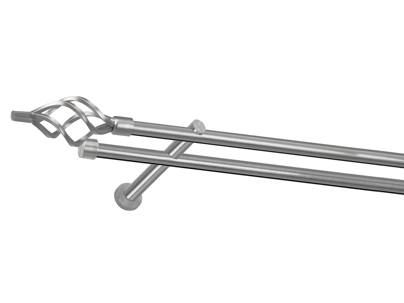 Dvojradová garniža s povrchovou úpravou - odtieň satin-nikel (matné striebro). Celokovové garniže s kvalitnou povrchovou úpravou - galvanické pokovovanie. Galvanické pokovovanie zabezpečuje vyššiu povrchovú tvrdosť, zvýšenú dolnosť voči poškriabaniu, hladký povrch. Dodávané sú v kompletoch.