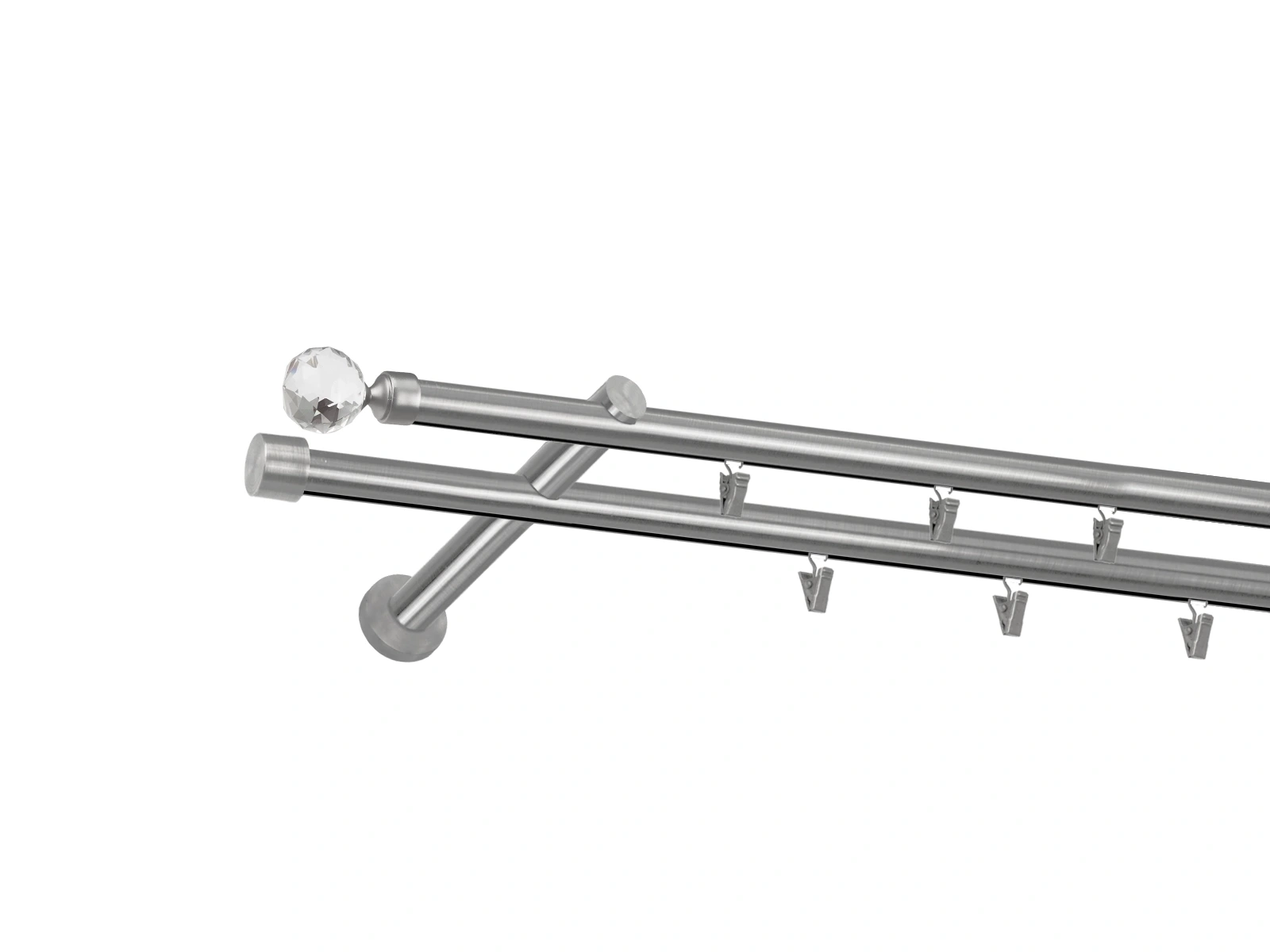 Dvojradová garniža s povrchovou úpravou - odtieň satin-nikel (matné striebro). Celokovové garniže s kvalitnou povrchovou úpravou - galvanické pokovovanie. Galvanické pokovovanie zabezpečuje vyššiu povrchovú tvrdosť, zvýšenú dolnosť voči poškriabaniu, hladký povrch. Dodávané sú v kompletoch.