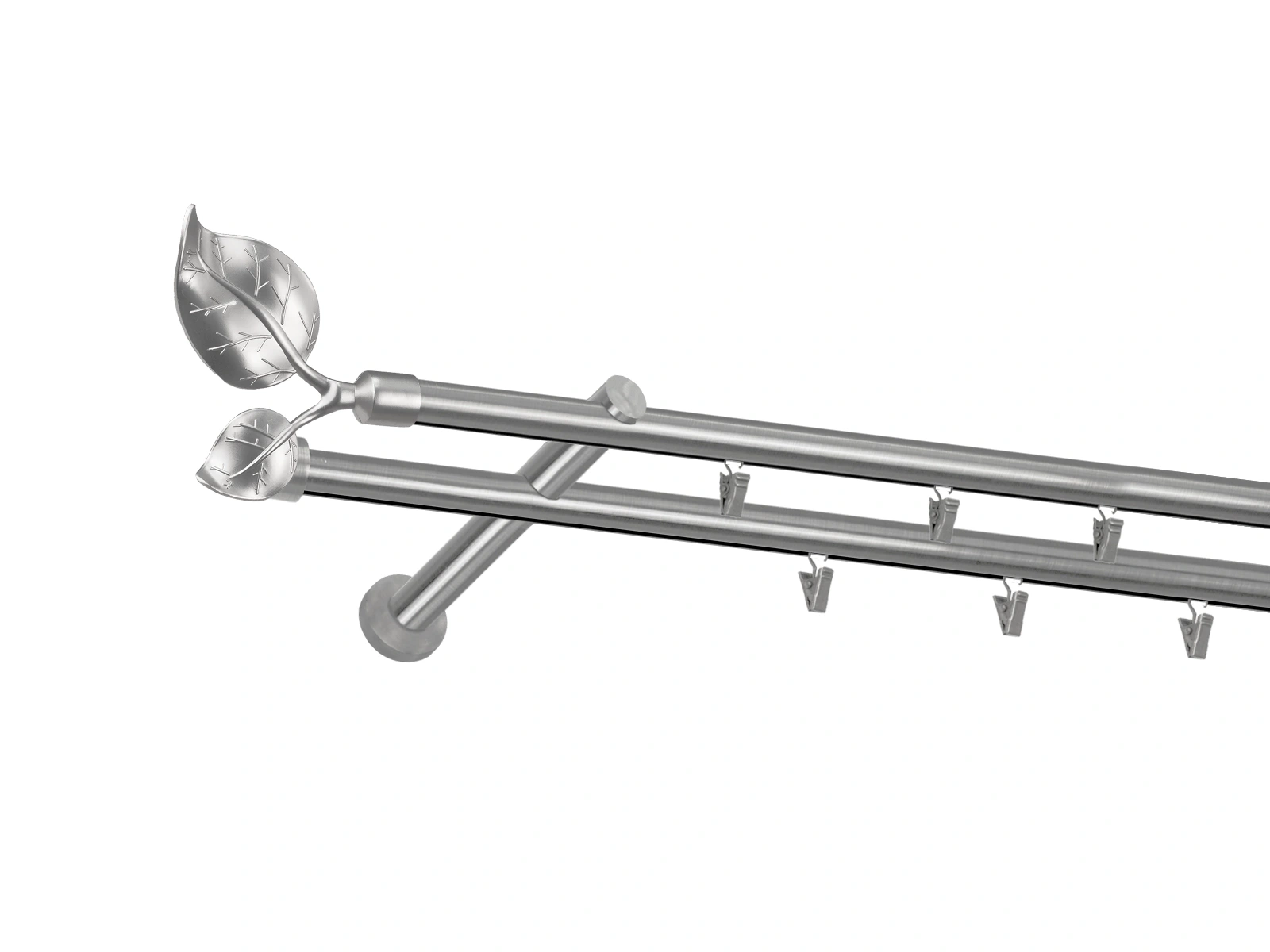 Dvojradová garniža s povrchovou úpravou - odtieň satin-nikel (matné striebro). Celokovové garniže s kvalitnou povrchovou úpravou - galvanické pokovovanie. Galvanické pokovovanie zabezpečuje vyššiu povrchovú tvrdosť, zvýšenú dolnosť voči poškriabaniu, hladký povrch. Dodávané sú v kompletoch.