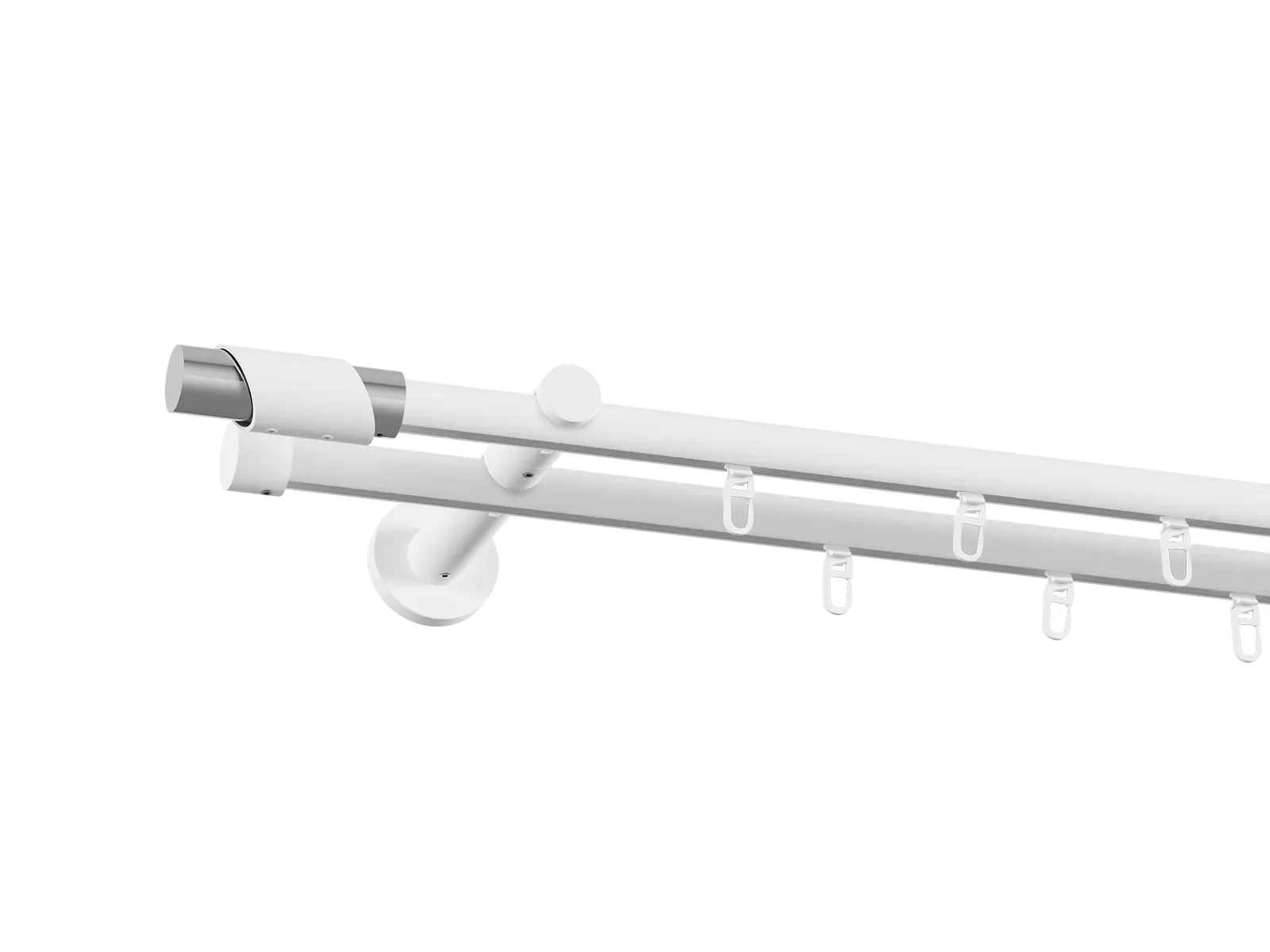 • Dĺžka 1600 mm - tyč 19mm - 1600mm - 2ks, držiak dvojitý - 2ks, koncovka - 2ks, koncovka zadná (PULLO) - 2ks, krúžok so štipcom - 30ks (pri výbere parametra príslušenstvo s krúžkami so štipcom), skrutky a hmoždinky na montáž