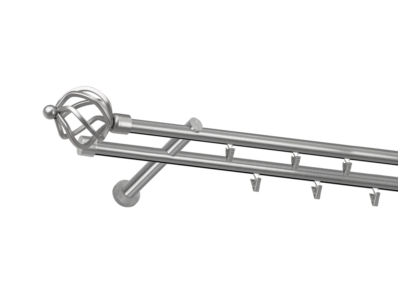 Dvojradová garniža s povrchovou úpravou - odtieň satin-nikel (matné striebro). Celokovové garniže s kvalitnou povrchovou úpravou - galvanické pokovovanie. Galvanické pokovovanie zabezpečuje vyššiu povrchovú tvrdosť, zvýšenú dolnosť voči poškriabaniu, hladký povrch. Dodávané sú v kompletoch.