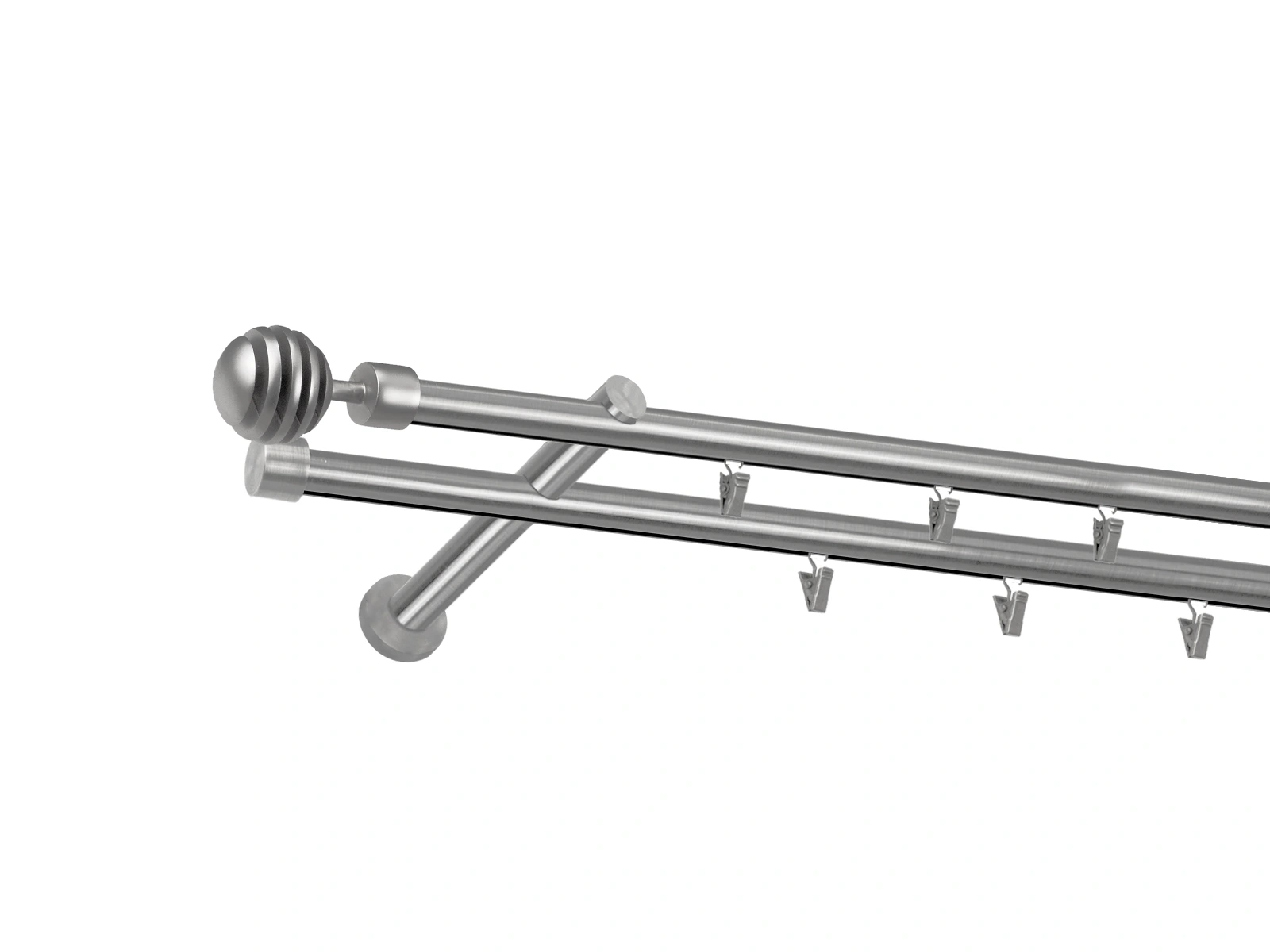 Dvojradová garniža s povrchovou úpravou - odtieň satin-nikel (matné striebro). Celokovové garniže s kvalitnou povrchovou úpravou - galvanické pokovovanie. Galvanické pokovovanie zabezpečuje vyššiu povrchovú tvrdosť, zvýšenú dolnosť voči poškriabaniu, hladký povrch. Dodávané sú v kompletoch.