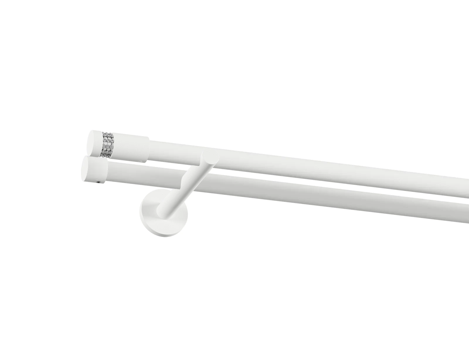 • V prípade, že ste si objednali ku garniži príslušenstvo, navlečte krúžky so štipcami na tyč., Následne dotiahnite poistné skrutky na držiaku, ktoré zabránia pohybu tyče.