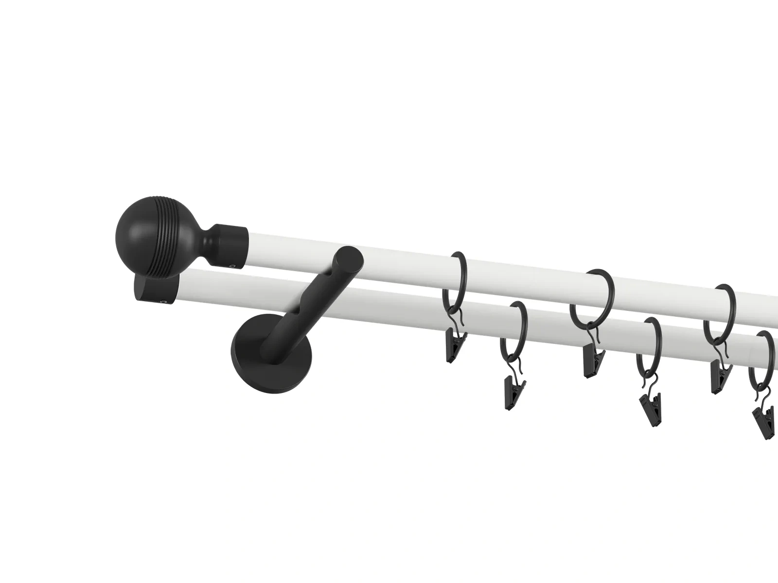 Čierne a biele kovové rúrky pre garniže s klasickým a drážkovým profilom