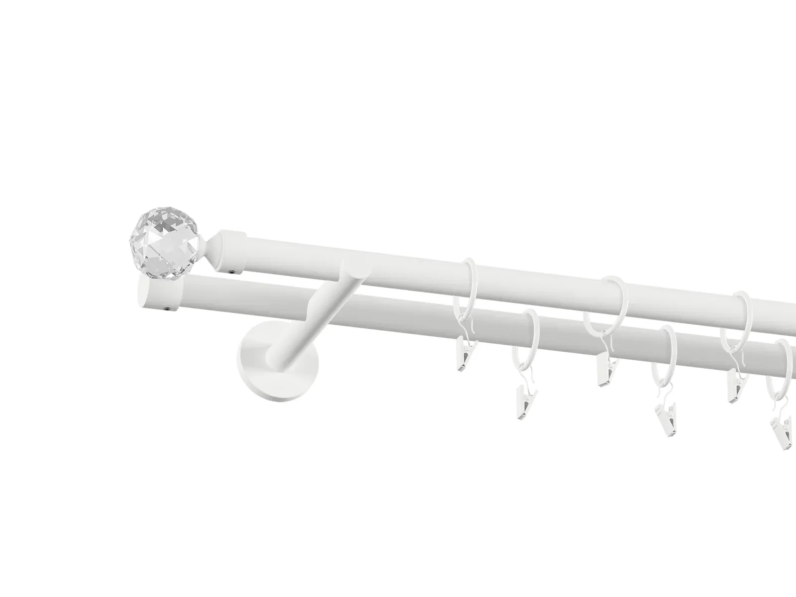 • Dĺžka 4400 mm - tyč 19mm - 2200mm - 4ks, spojka tyče – 2 ks, držiak dvojitý - 3ks, koncovka - 2ks, koncovka zadná (PULLO) -2ks, krúžok so štipcom - 84ks (pri výbere parametra príslušenstvo s krúžkami so štipcom), skrutky a hmoždinky na montáž