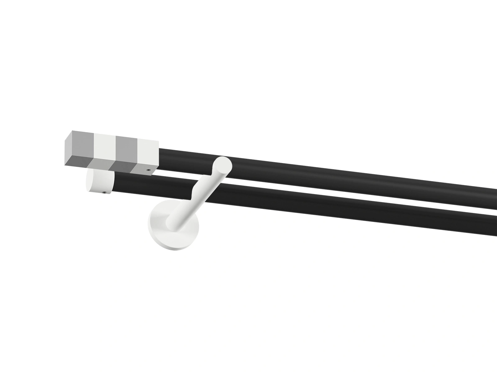 Čierne a biele kovové rúrky pre garniže s klasickým a drážkovým profilom