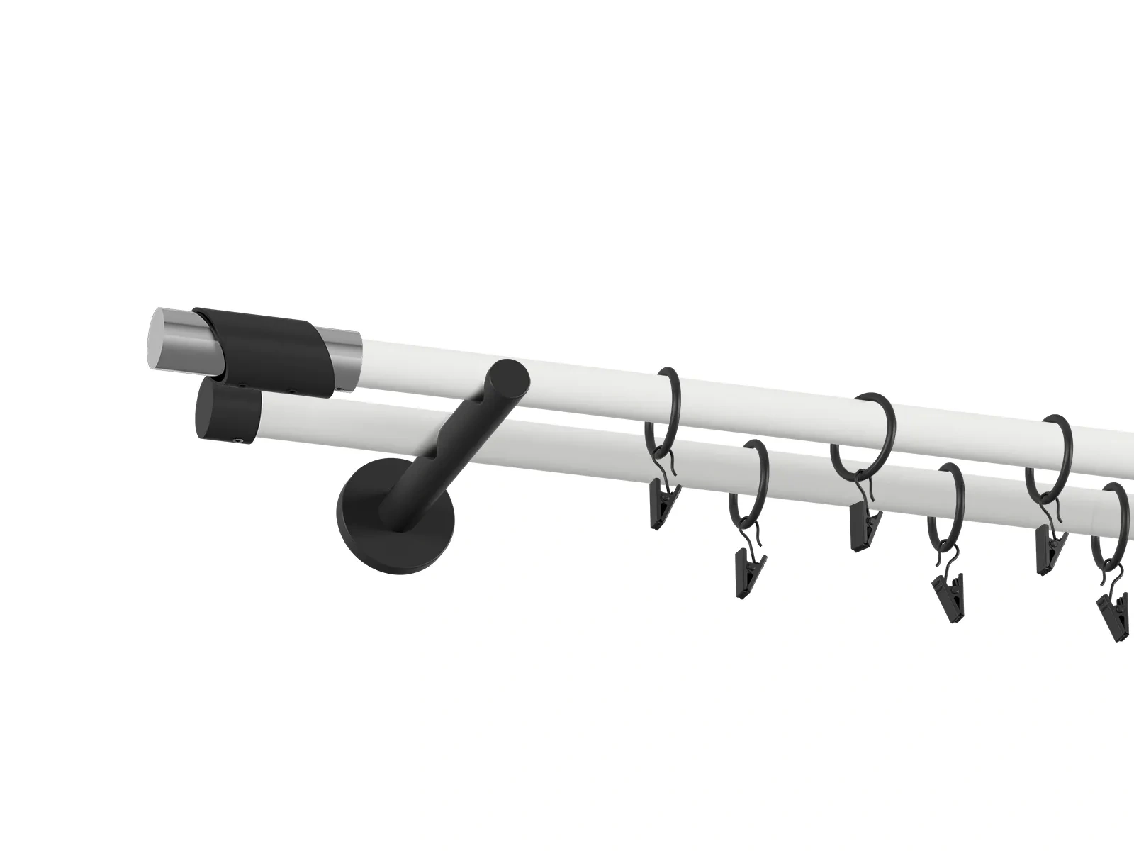 • Dĺžka 1600 mm - tyč 19mm - 1600mm - 2ks, držiak dvojitý - 2ks, koncovka - 2ks, koncovka zadná (PULLO) - 2ks, krúžok so štipcom - 30ks (pri výbere parametra príslušenstvo s krúžkami so štipcom), skrutky a hmoždinky na montáž