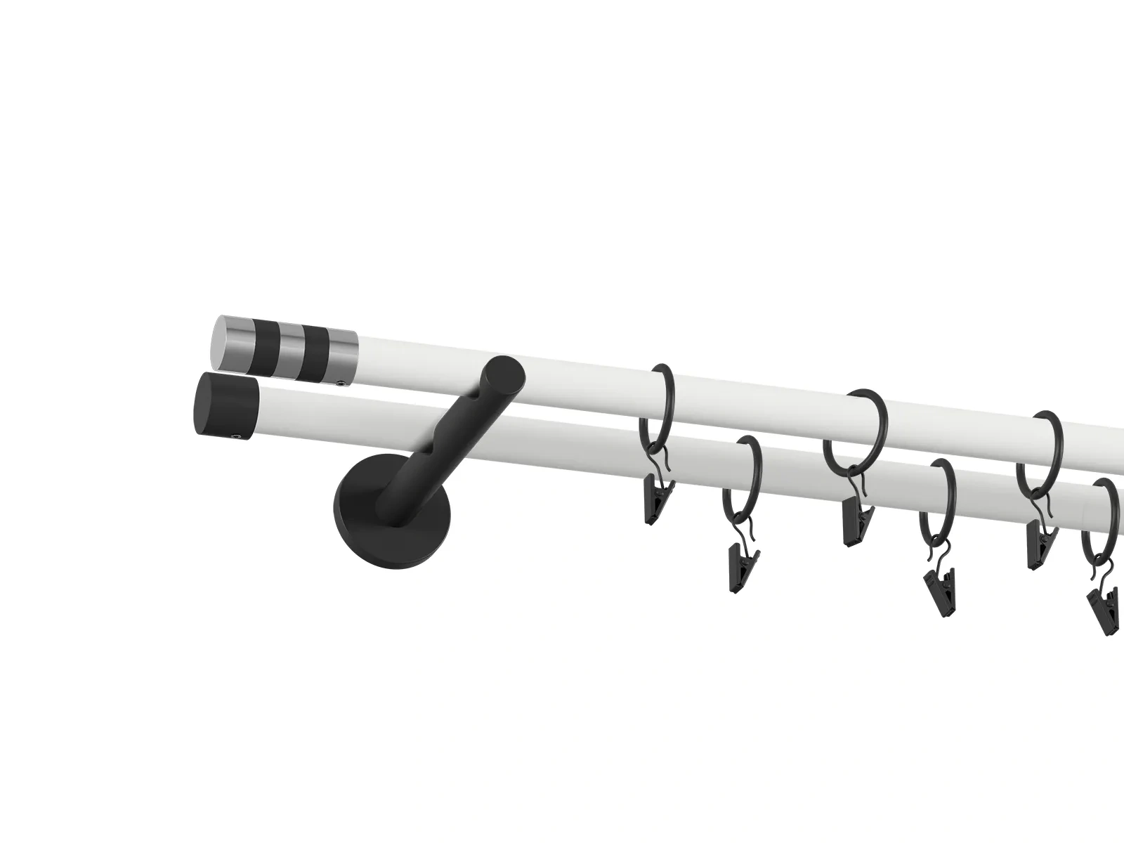 • Dĺžka 1600 mm - tyč 19mm - 1600mm - 2ks, držiak dvojitý - 2ks, koncovka - 2ks, koncovka zadná (PULLO) - 2ks, krúžok so štipcom - 30ks (pri výbere parametra príslušenstvo s krúžkami so štipcom), skrutky a hmoždinky na montáž