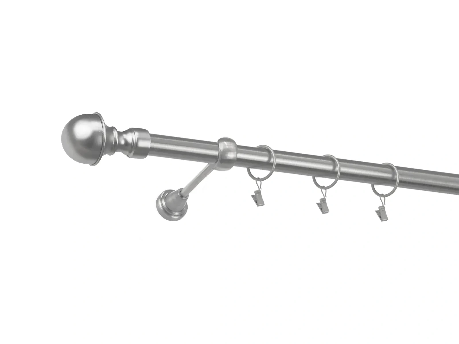 • Dĺžka 2200 mm - tyč 25mm - 2200mm - 1ks, držiak - 2ks, koncovka - 2ks, krúžok so štipcom - 21ks (pri výbere parametra príslušenstvo s krúžkami so štipcom), skrutky a hmoždinky na montáž