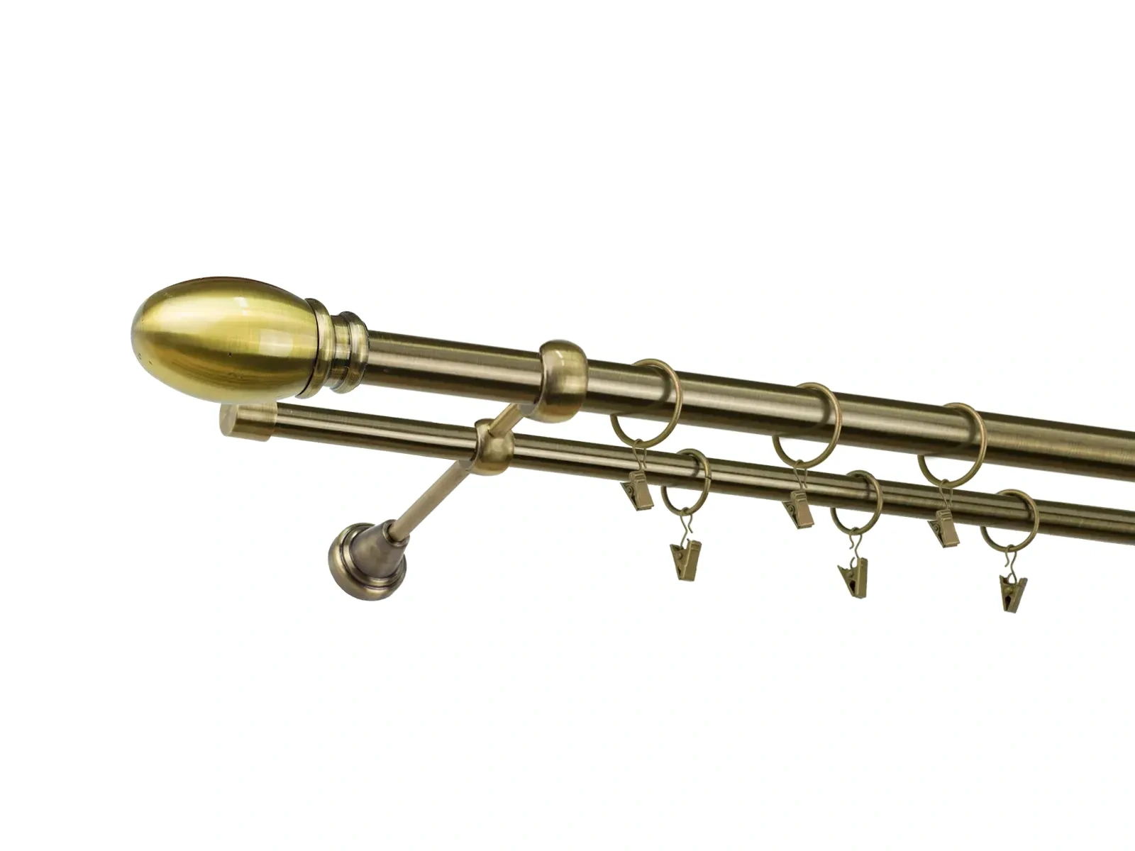 • Dĺžka 1200 mm - tyč 25mm - 1200mm - 1ks,  tyč 16mm - 1200mm - 1ks, držiak dvojitý - 2ks, koncovka - 2ks, koncovka zadná (PULLO) - 2ks, krúžok so štipcom - 22ks (pri výbere parametra príslušenstvo s krúžkami so štipcom), skrutky a hmoždinky na montáž