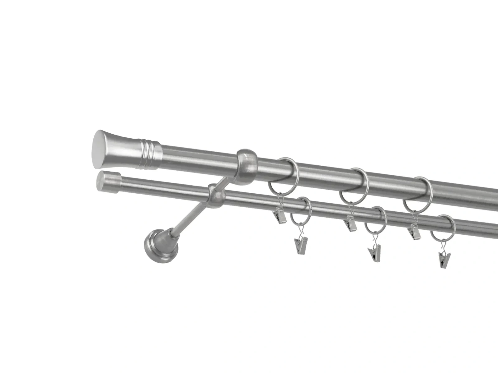 Kvalitné kovové garniže o priemere prednej tyče 25mm a zadnej 16mm. Všetky tyče, koncovky a držiaky sú s povrchovou úpravou galvanizácie.
