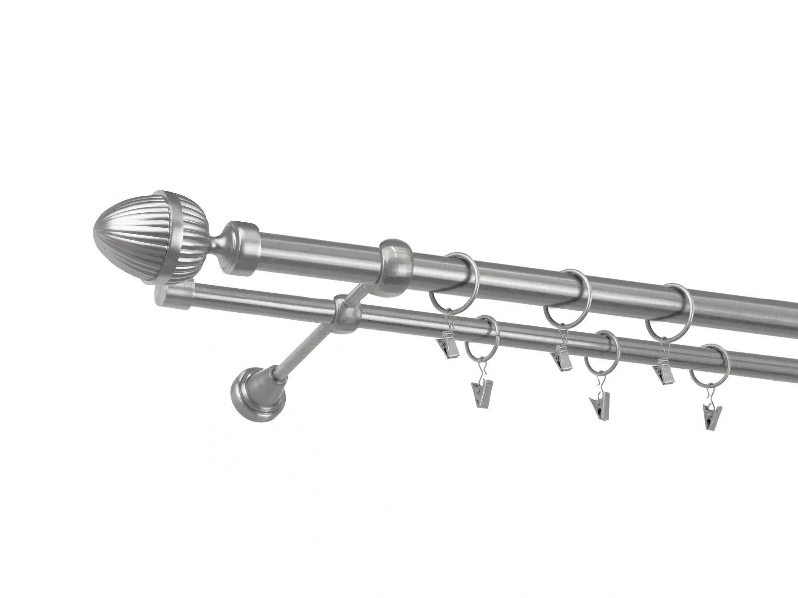 • Dĺžka 3000 mm - tyč 25mm - 3000mm - 1ks,  tyč 16mm - 3000mm - 1ks, držiak dvojitý - 3ks, koncovka - 2ks, koncovka zadná (PULLO) - 2ks, krúžok so štipcom - 56ks (pri výbere parametra príslušenstvo s krúžkami so štipcom), skrutky a hmoždinky na montáž