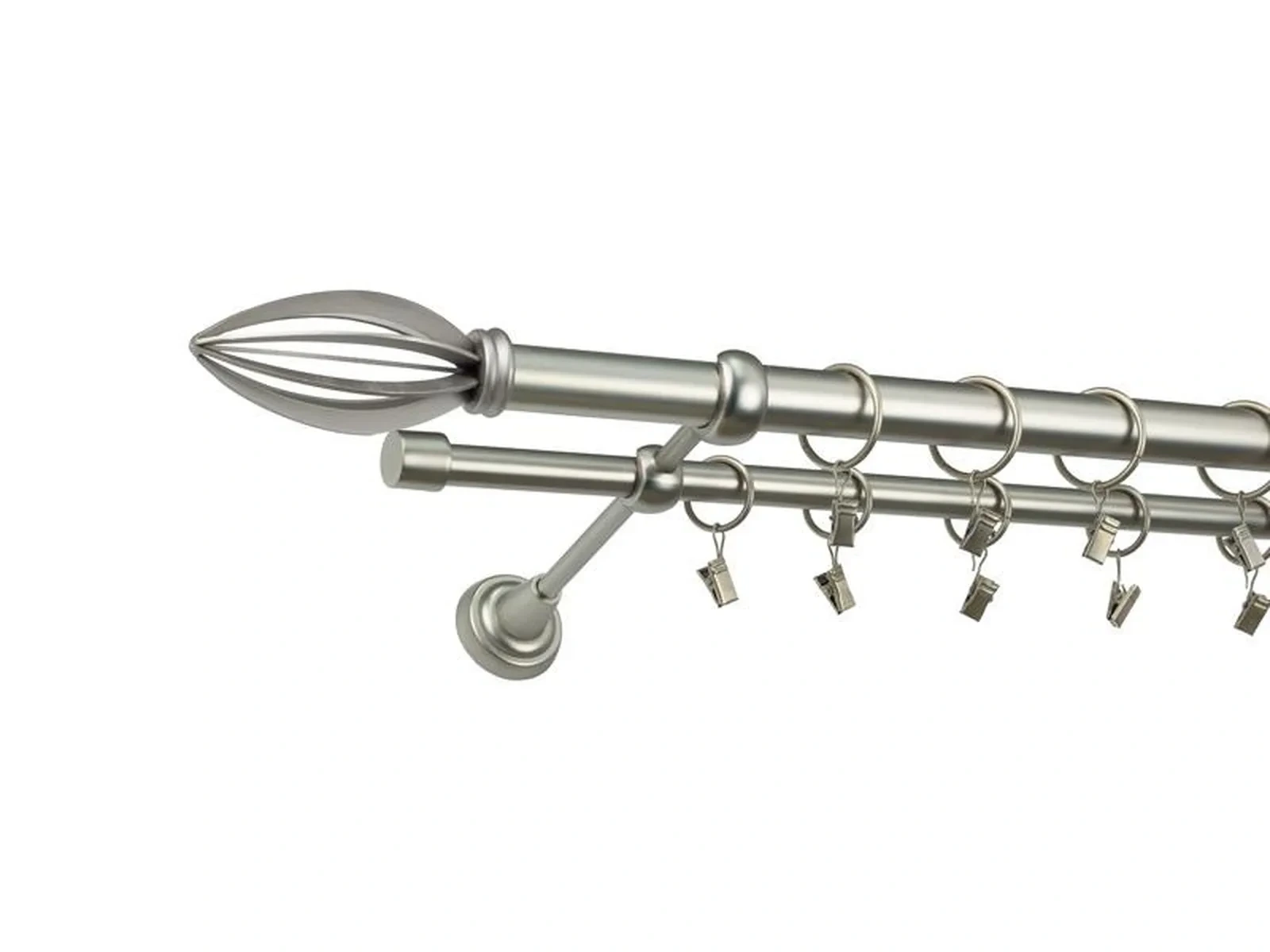 • Dĺžka 1600 mm - tyč 25mm - 1600mm - 1ks,  tyč 16mm - 1600mm - 1ks, držiak dvojitý - 2ks, koncovka - 2ks, koncovka zadná (PULLO) - 2ks, krúžok so štipcom - 30ks (pri výbere parametra príslušenstvo s krúžkami so štipcom), skrutky a hmoždinky na montáž