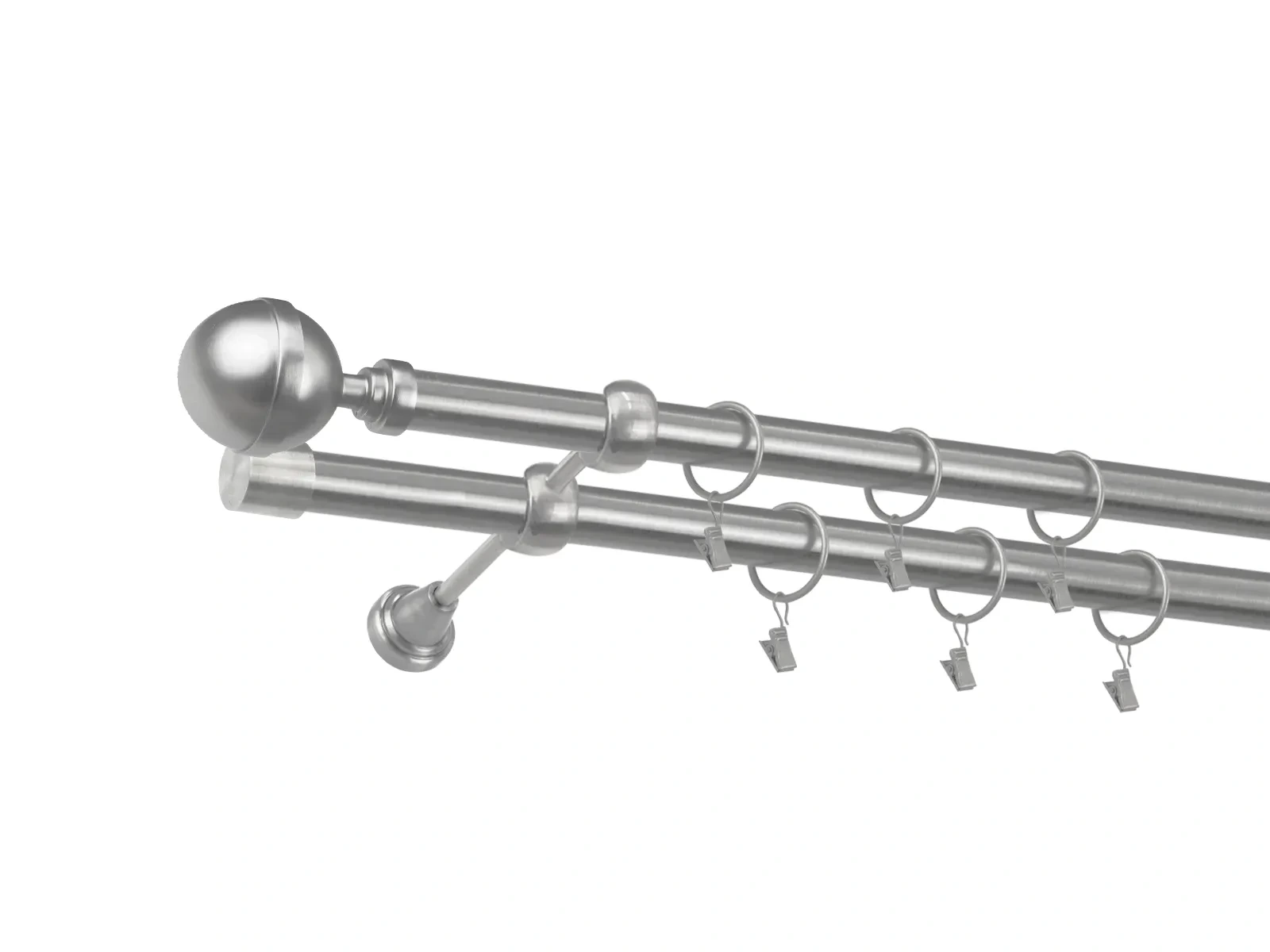 • Dĺžka 1600 mm - tyč 25mm - 1600mm - 2ks, držiak dvojitý - 2ks, koncovka - 2ks, koncovka zadná (PULLO) - 2ks, krúžok so štipcom - 30ks (pri výbere parametra príslušenstvo s krúžkami so štipcom), skrutky a hmoždinky na montáž