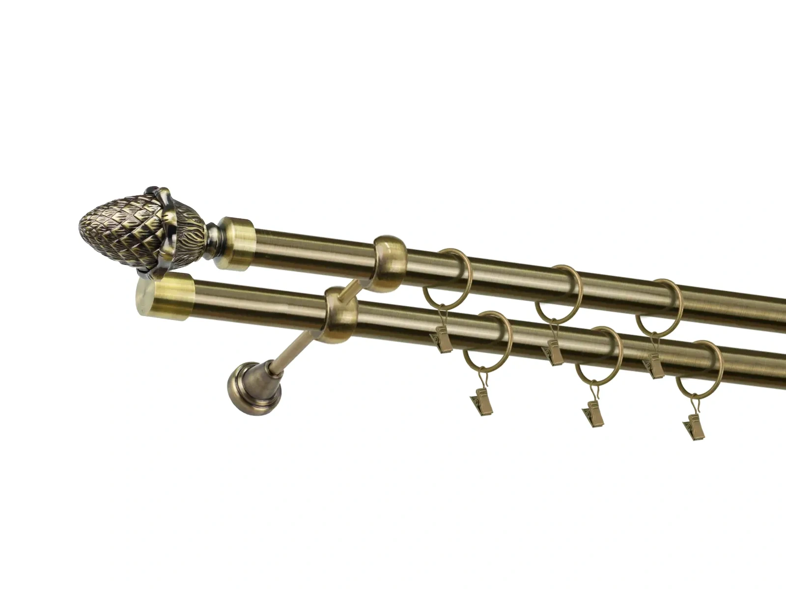 • Dĺžka 3200 mm - tyč 25mm - 1600mm - 4ks, spojka tyče – 2 ks, držiak dvojitý - 3ks, koncovka - 2ks, koncovka zadná (PULLO) - 2ks, krúžok so štipcom - 60ks (pri výbere parametra príslušenstvo s krúžkami so štipcom), skrutky a hmoždinky na montáž