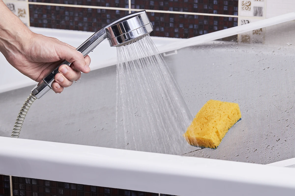 Puteți folosi și un jet fin de apă de la duș, dar niciodată sub presiune.