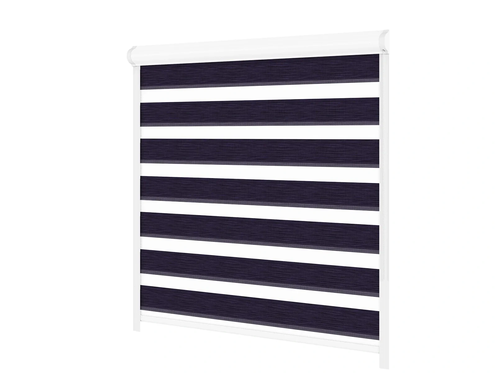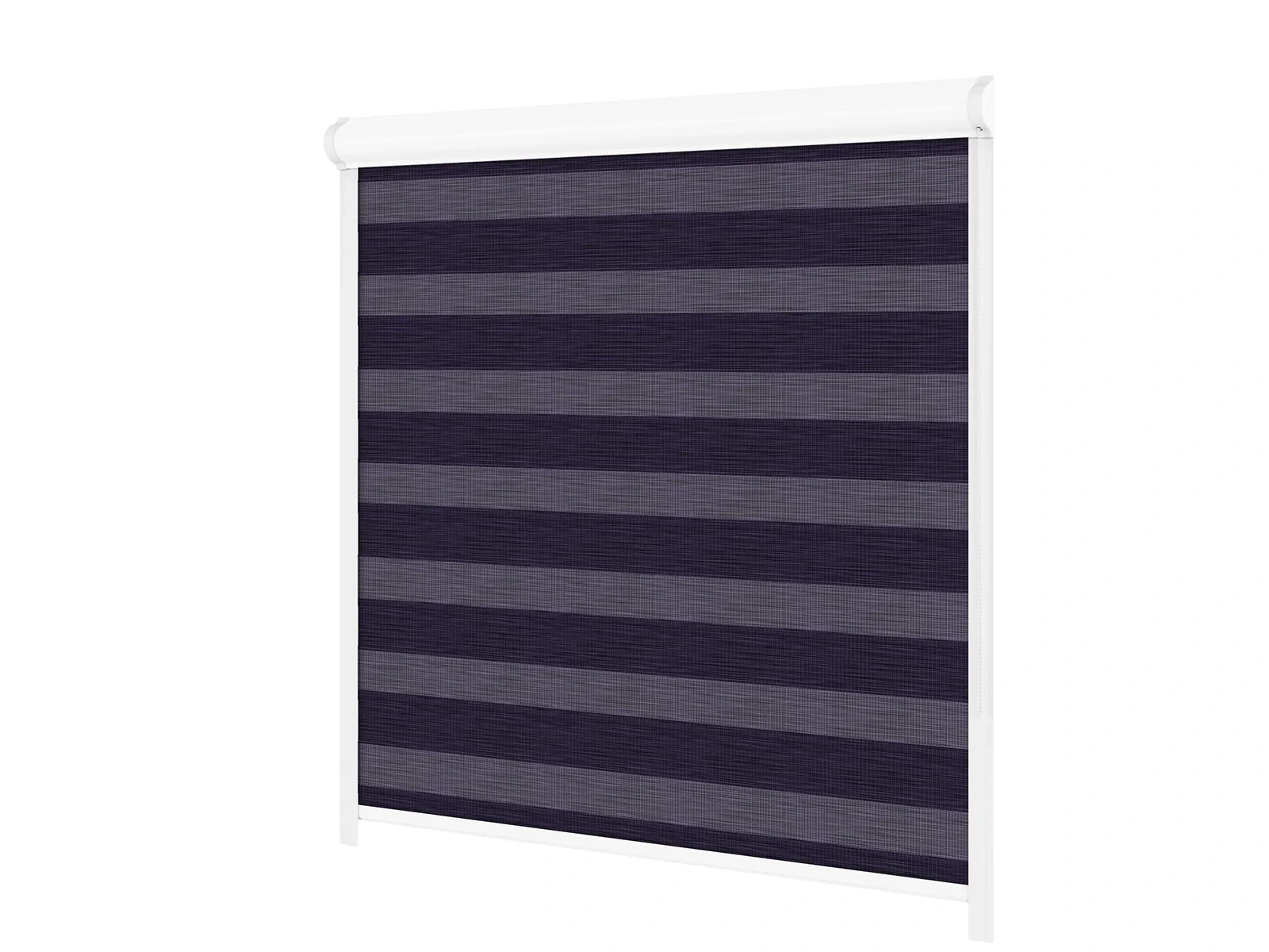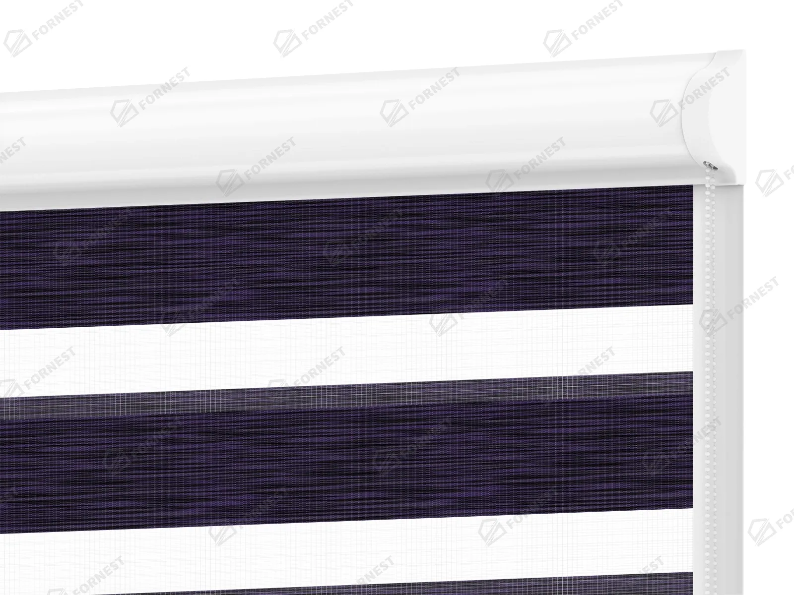 Roleta SWING PREMIUM - deň a noc - látka Maurícius 68 - tmavo fialová (čierny dekor)
