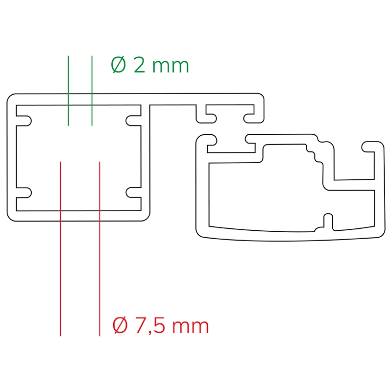 • Do profilov dverí predvŕtajte otvory, cez ktoré budete sieťové dvere pripevňovať k rámu balkónových dverí. Množstvo otvorov záleži od veľkosti produktu (odporúčame aspoň 3 otvory na výšku a 2 na šírku produktu).
