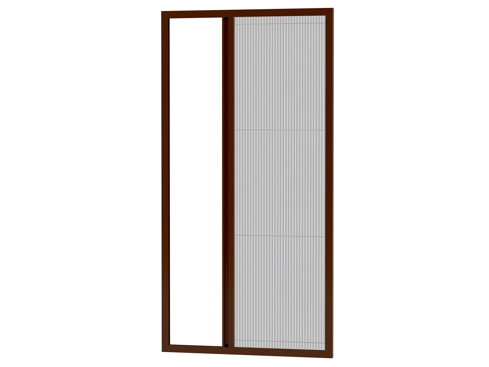 Sieťky proti hmyzu na DVERE - PLISÉ LITE. Profily sú rezané pod 45° uhlom. Rohový spájač je vo vnútri profilu a teda pohľadovo neviditeľný. Napínanie je riešené pomocou napínača umiestneného v profile jednoduchým posunutím bez potreby demontáže výrobku.