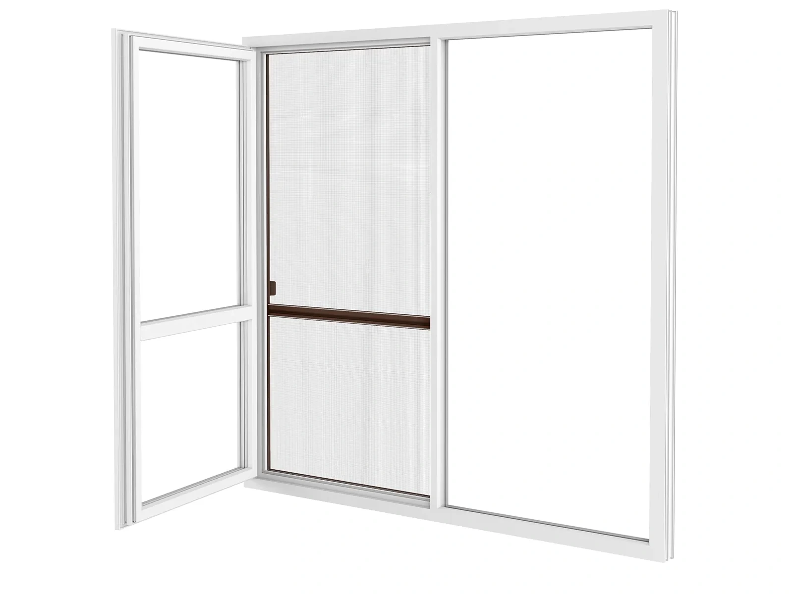 Posuvné sieťové dvere. Ľahký a plynulý posuv, vďaka kefkovému tesneniu.